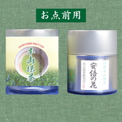 静岡茶発祥の地、本山産の原料を100%使用した高級抹茶です。苦味や渋味が控えめで、甘みと旨味がバランスよく感じられ、茶葉の蒸し時間や製法にこだわりがあり、色鮮やかで美しいグリーンに仕上がります。抹茶初心者でも飲みやすいとされています。 |